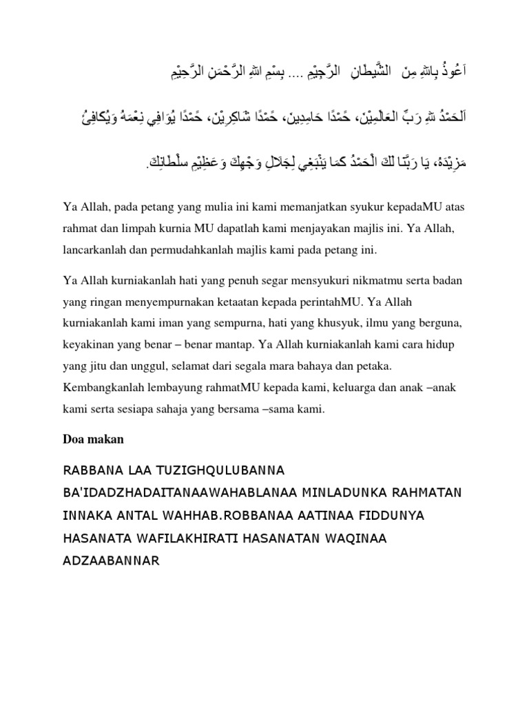 Doa Majlis Makan Malam Ringkas Coltcxt